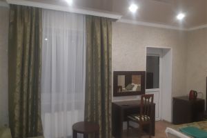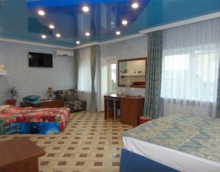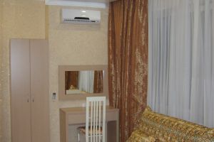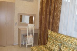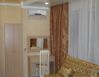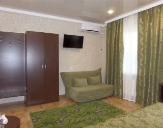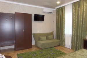 - Двуспальная кровать, диван-кровать, кабельное телевидение, мини-холодильник, светильник, сплит-система, банные полотенца, банные принадлежности, душ, душевая кабина, раковина, туалет, туалетные средства, вид во двор, Wi-Fi, письменный стол, стул