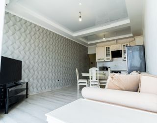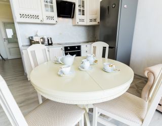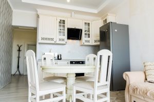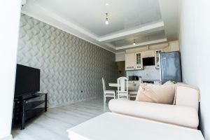 - Кровать двуспальная, диван раскладной, кондиционер, телевизор, обеденный стол, кухня, с/у (душ+туалет), стиральная машина