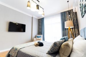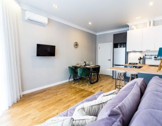 - Двуспальная кровать, диван раскладной, телевизор, кондиционер, кухня, с/у (душ+туалет), стиральная машина