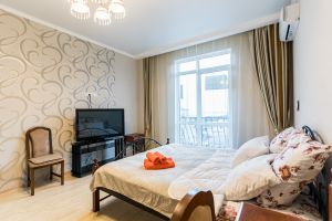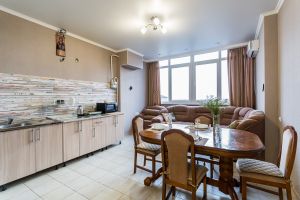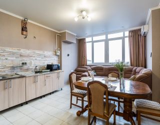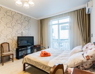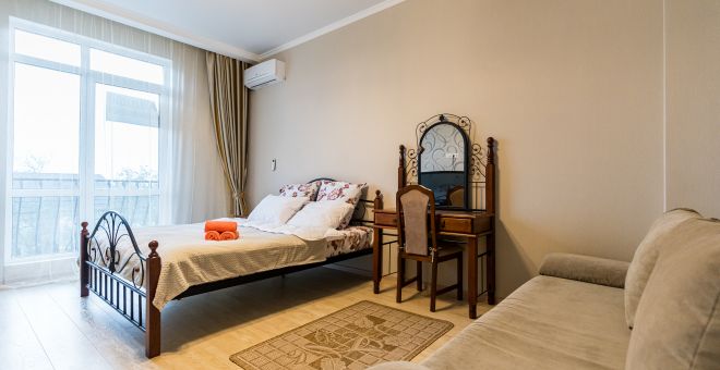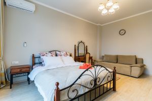 - Двуспальная кровать, диван раскладной, телевизор, кондиционер, кухня, с/у (душ+туалет), стиральная машина