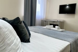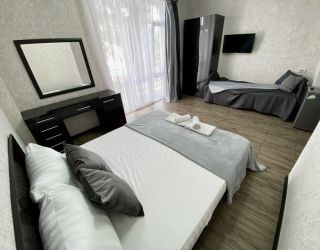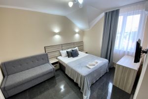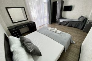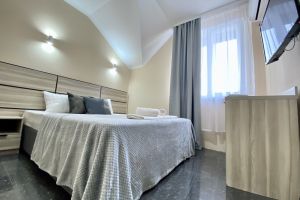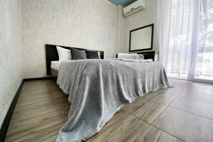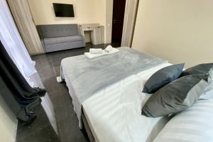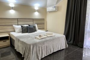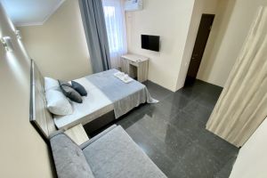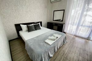 - Кровать двуспальная, диван, шкаф, холодильник, кондиционер, телевизор, санузел (душ+туалет), фен