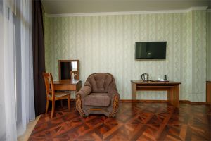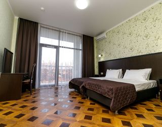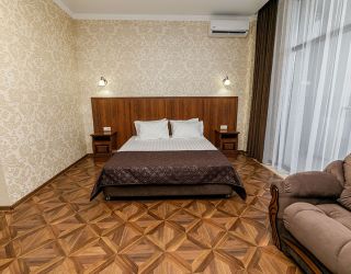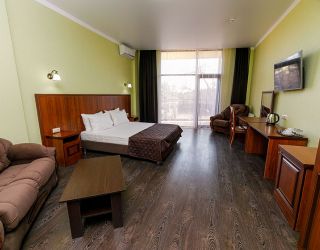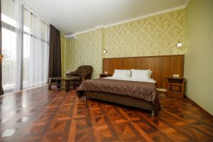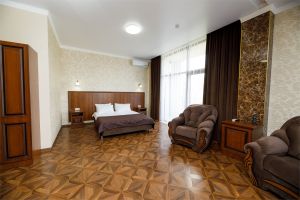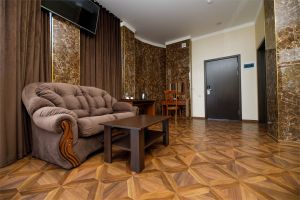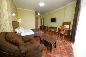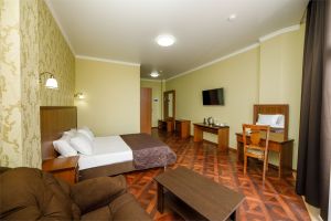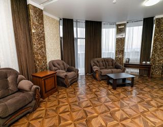 Номера с увеличенной площадью - от 52 квадратных метров - подойдут для самых взыскательных гостей. В номере, кроме обычной мебели и стандартного набора услуг (телефон, мини-холодильник, телевизор, сейф, чайные аксессуары, беспроводной доступ в интернет), присутствует кухонный уголок.