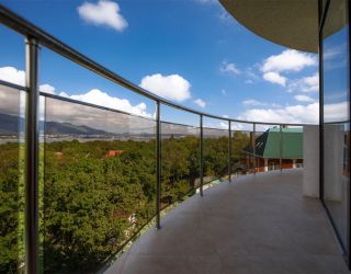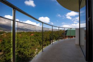 Номера категории люкс имеют балкон с видом на бухту и горы или на бассейн.