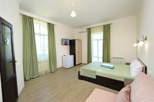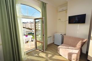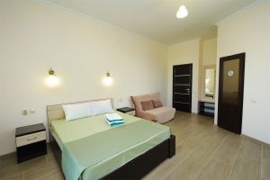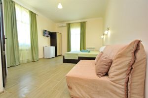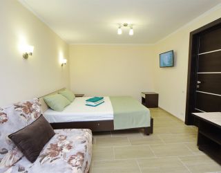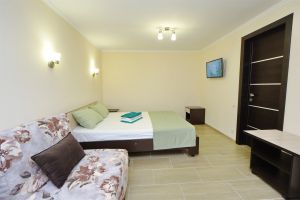 - основные места - двуспальная кровать и двухместный диван, с/у с душем, ТВ, мини-холодильник, сплит-система