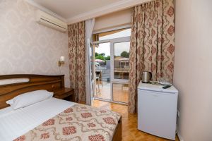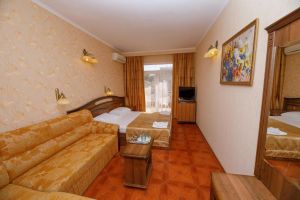 - основные места - 2-спальная кровать и диван, с/у с душем, ТВ, мини-холодильник, сплит-система