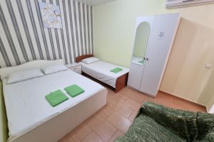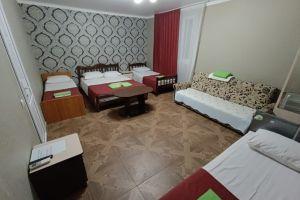 - С/У, душ, ТВ, Х, К, основные места двуспальная кровать, две односпальных кровати, раскладной диван.