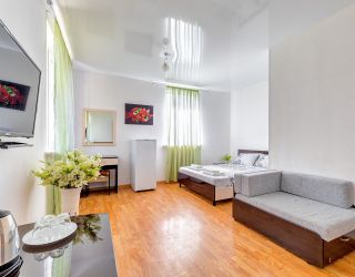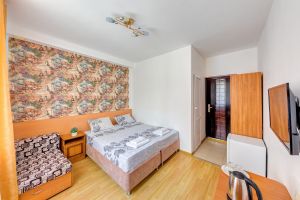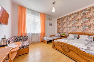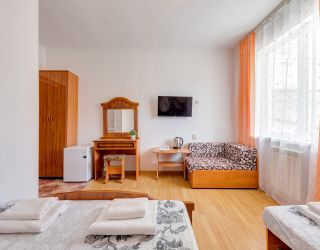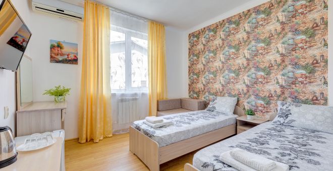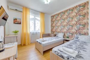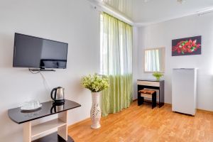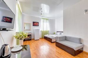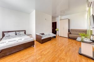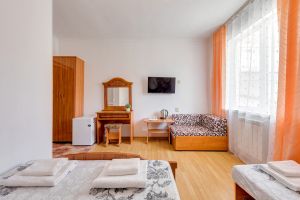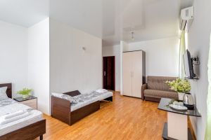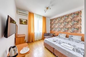 - основные места - двуспальная кровать и двуспальный диван, с/у с душем, сплит-система, мини-холодильник, ТВ