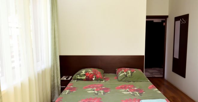 - Двуспальная кровать, кондиционер, холодильник, телевизор, санузел (душ+туалет), балкон