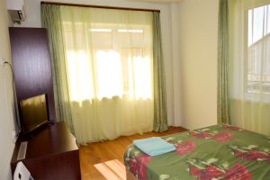 - Двуспальная кровать, диван, кондиционер, холодильник, телевизор, санузел (душ+туалет), балкон