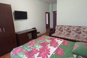 - Двуспальная кровать, односпальная кровать, кондиционер, холодильник, телевизор, санузел (душ+туалет), балкон