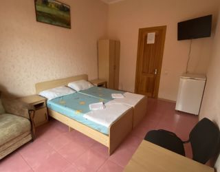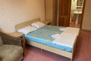 - Кровать двуспальная , диван кровать , мебельный гарнитур, тумбочки прикроватные, холодильник, кондиционер, телевизор, санузел (душ+туалет), постельное белье,полотенца, мыльные принадлежности, набор посуды.