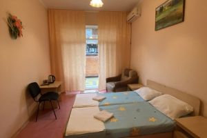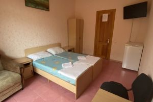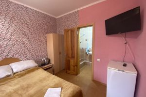 - Кровать двуспальная (или 2 раздельные), мебельный гарнитур, тумбочки прикроватные, холодильник, кондиционер, телевизор, санузел (душ+туалет),постельное белье, полотенце,мыльные принадлежности