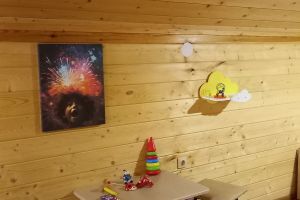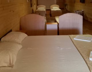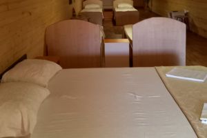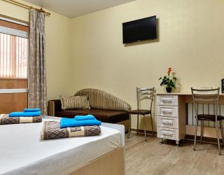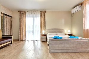 - 1 двуспальная кровать, 5 односпальных кроватей, комод, журнальный столик, диван, стол, стулья, шкаф, диван, холодильник, телевизор, кондиционер, с/у