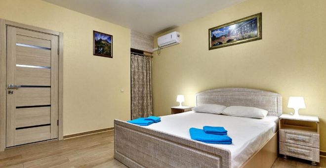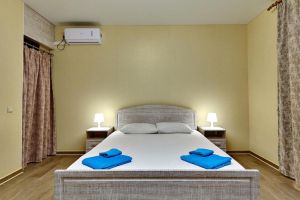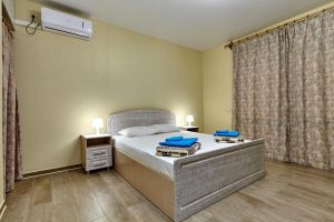 - Кровать двуспальная, прикроватная тумбочка, стол, стулья, шкаф, диван, холодильник, телевизор, кондиционер, с/у
