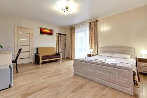 - Кровать двуспальная, прикроватная тумбочка, стол, стулья, шкаф, банкетка, холодильник, телевизор, кондиционер, с/у