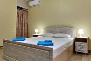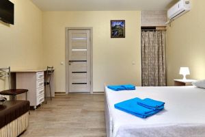- Кровать двуспальная, прикроватная тумбочка, стол, стулья, шкаф, холодильник, телевизор, кондиционер, с/у