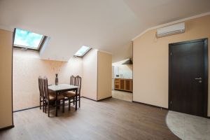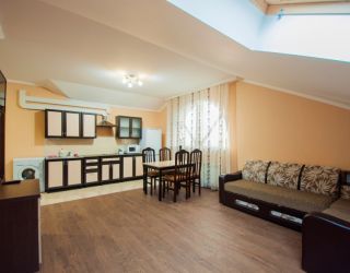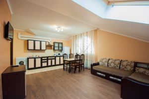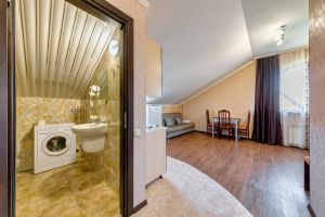 - Кровать двуспальная, два дивана, тумбочки прикроватные, рабочий стол, холодильник, кондиционер, телевизор, стиральная машина, КУХНЯ, санузел (душ+туалет)