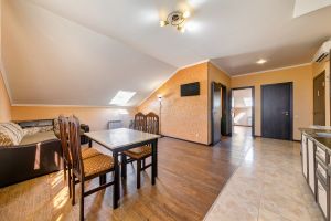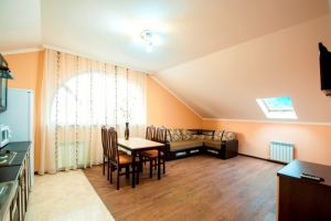 - Кровать двуспальная, три дивана, тумбочки прикроватные, рабочий стол, холодильник, кондиционер, телевизор, стиральная машина, КУХНЯ, санузел (душ+туалет)