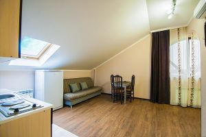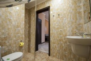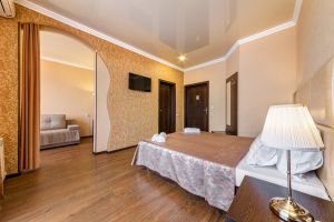 - Кровать двуспальная, диван, тумбочки прикроватные, рабочий стол, холодильник, кондиционер, телевизор, санузел (душ+туалет)