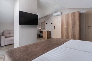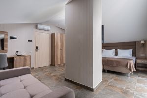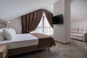 - основные места - двуспальная кровать и диван, с/у с душем, тв, к, мини-холодильник