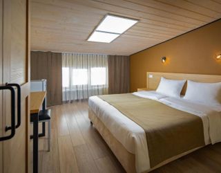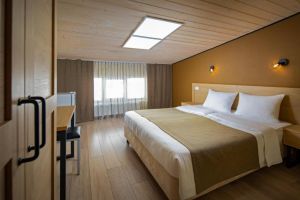- 16-21 кв.м, одна двуспальная кровать (160х200 или 180х200), прикроватные тумбочки, туалетный столик, стул, с/у с душем, телевизор, сплит-система, мини-холодильник. Номера расположены на 2-3 этажах