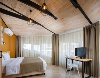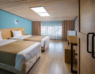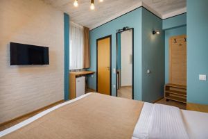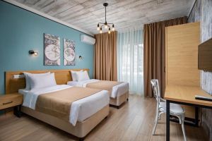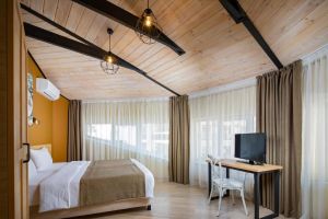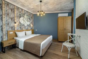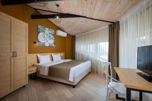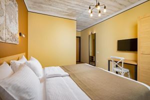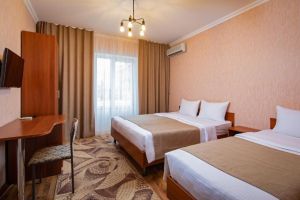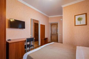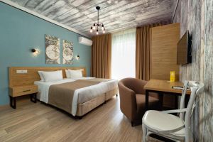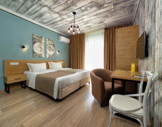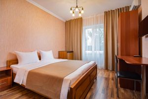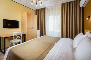 - 16-18 кв.м, одна двуспальная кровать (160х200) или две односпальные кровати (80х200), прикроватные тумбочки, туалетный столик, стул, с/у с душем, телевизор, сплит-система, мини-холодильник