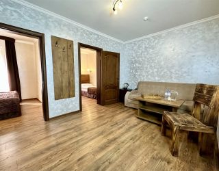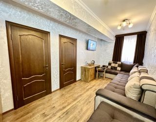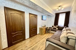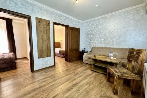 - Просторный 3-комнатный Люкс Семейный до семи гостей. В номере — 2 спальни с двуспальными и односпальными кроватями и гостиная с диваном. В номере есть телевизор, чайник, мини-холодильник, фен, чай/кофе, бутилированная вода, собственная ванная комната с душевой кабиной, базовыми косметическими средствами, полотенцами и тапочками. Уборка, смена белья/полотенец (по запросу)