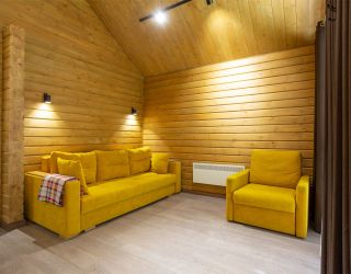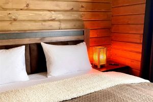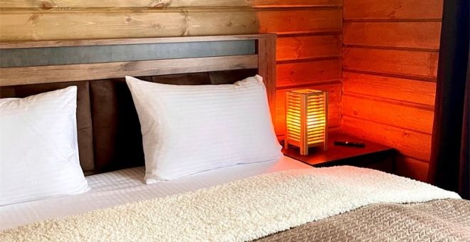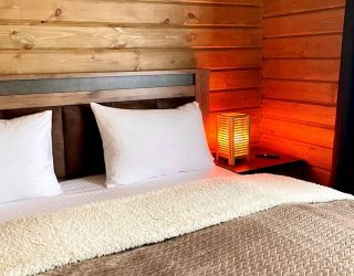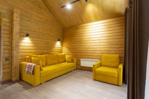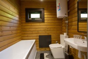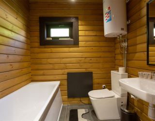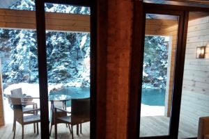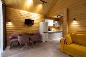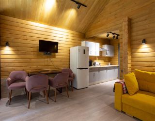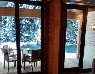 - Экологичные и прочные дома из клееного бруса. Спальня, кухня-гостиная, ванная комната, терраса. Панорамные окна с видом на реку