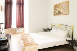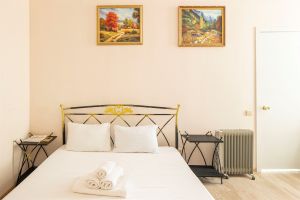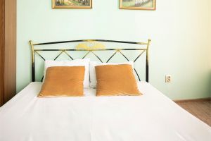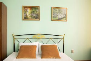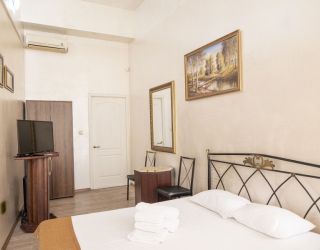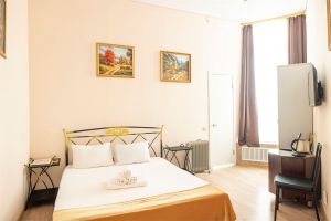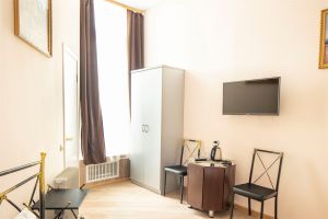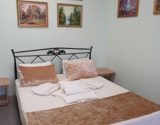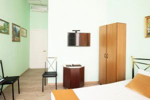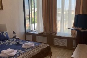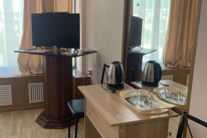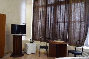 - В номере одна большая двуспальная кровать, тумбы, стулья, телевизор с плоским экраном, вешалка-стойка для одежды, махровые халаты, банные принадлежности, тапочки, посуда, чайный набор (чай, кофе). Вид из окна на достопримечательности города курорта и гору "Машук". Индивидуальный санузел и душевая кабина расположена за пределами номера в трех метрах от комнаты проживания. Пользоваться индивидуальным санузлом и душевой кабиной могут только проживающие в номере гости. Рядом с номером ,на этаже , к услугам общего пользования установлены : кулер, гладильная доска, утюг.