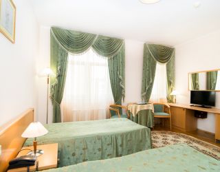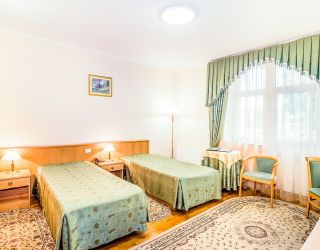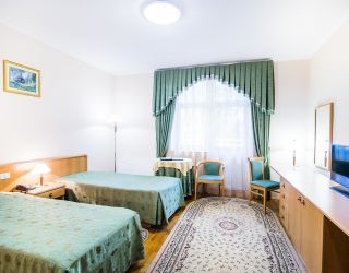 - с/у с душем, фен, ТВ, телефон, система кондиционирования, минибар, сейф, чайник. посуда, гладильная доска