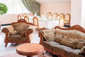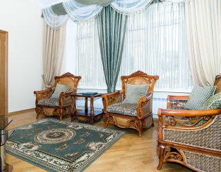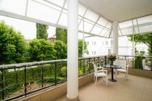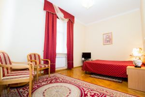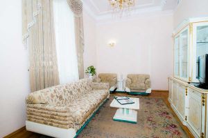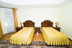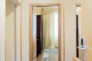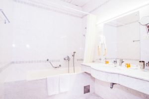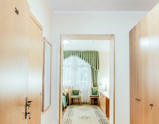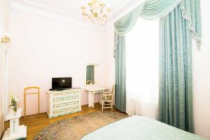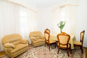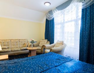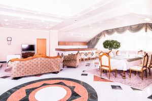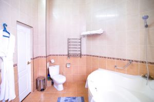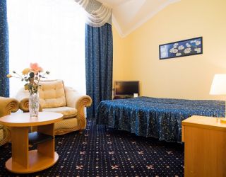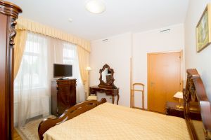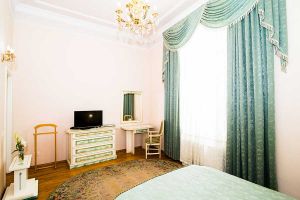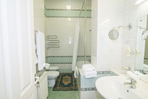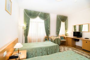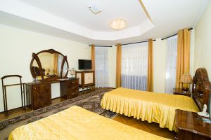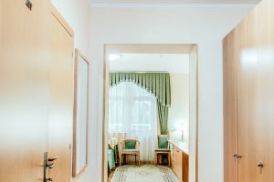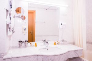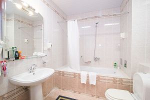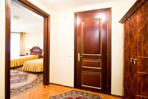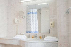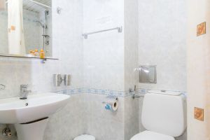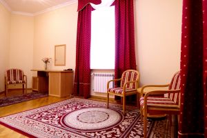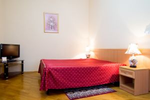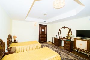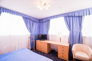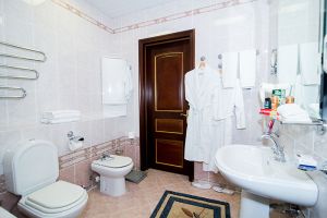 - с/у с ванной, биде, фен, ТВ,телефон, система кондиционирования, минибар, сейф, чайник. посуда, гладильная доска