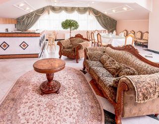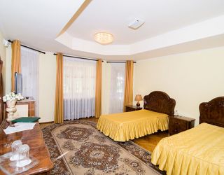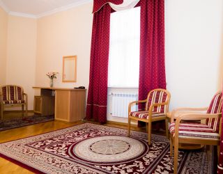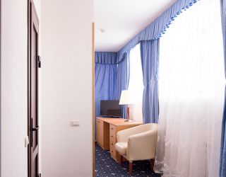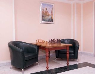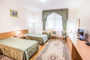 - с/у, фен, ТВ, телефон, система кондиционирования, минибар, сейф, чайник. посуда, гладильная доска