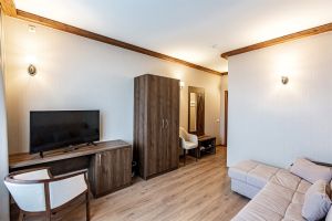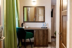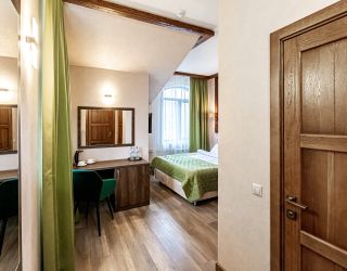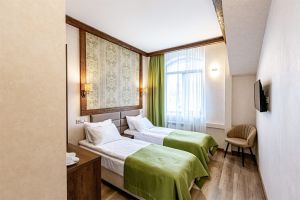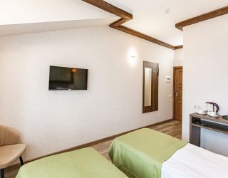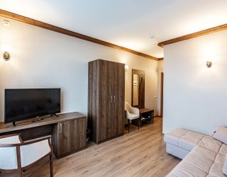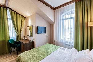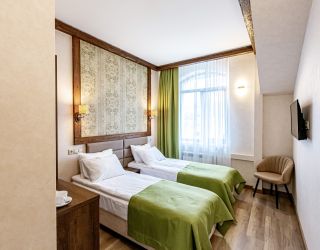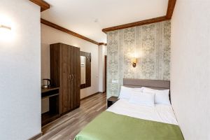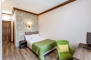 - Представляет собой уютный одноместный номер площадью 16 м2. Прекрасно подходит для уединения. Номера данной категории находятся на третьем и четвертом этажах. Из номера открывается вид на город. Балкон есть в номере на 3 этаже.