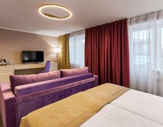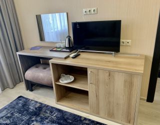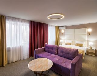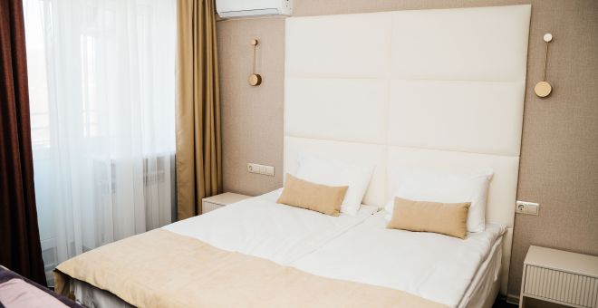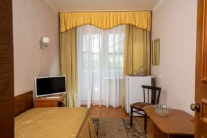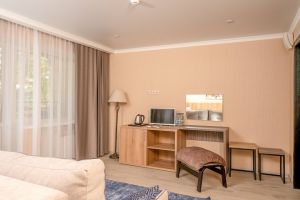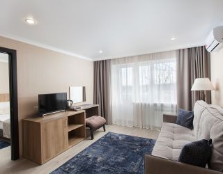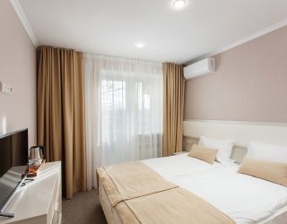 Количество комнат 2-комнатныйКоличество комнат 2-комнатныйТип номера ЛюксДополнительное место диванКол-во доп. мест 1 Кол-во номеров 20 Кол-во основных мест 2 Площадь (кв. м) 27 Балкон Мебель вешалказеркалокреслакровать двуспальнаянабор мягкой мебелиприкроватные тумбочкистолик журнальныйстульяшкафОборудование кондиционерсейфтелевизор ЖКхолодильникчайный набор посудыэлектрочайникСанузел с ванной/душемтапочкитуалетные принадлежностифенхалатСервис Wi-Fi бесплатносмена полотенецсмена постельного бельяуборка номераКоличество комнат 2-комнатныйКоличество комнат 2-комнатныйТип номера ЛюксКол-во доп. мест 1 Кол-во основных мест 2 Площадь (кв. м) 27 Балкон Мебель вешалкадиванзеркалокреслакровати односпальные /одна двуспальная кроватьприкроватные тумбочкистолик журнальныйстульяшкафОборудование сейфтелевизор ЖКхолодильникчайный набор посудыэлектрочайникСанузел с ванной/душемтапочкитуалетные принадлежностифенхалатСервис Wi-Fi бесплатносмена полотенецсмена постельного бельяуборка номераКоличество комнат 1-комнатныйТип номера СтандартныйДополнительное место евро-кроватьКол-во доп. мест 1 Кол-во номеров 58 Кол-во основных мест 2 Площадь (кв. м) 15 Балкон Мебель вешалказеркалокровати односпальныеприкроватные тумбочкишкафОборудование телевизорхолодильникСанузел с душемтуалетные принадлежностифенСервис Wi-Fi бесплатносмена полотенецсмена постельного бельяуборка номераКоличество комнат 1-комнатныйТип номера ЭкономКол-во номеров 58 Кол-во основных мест 1 Площадь (кв. м) 9 Мебель кровать односпальнаяприкроватные тумбочкишкафОборудование телевизорхолодильникСанузел с душемСервис смена полотенецсмена постельного бельяуборка номера