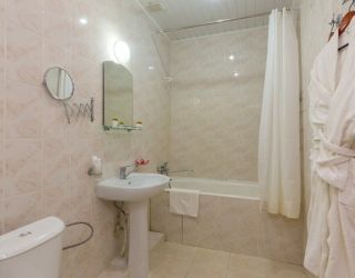 Санузел и душевые на этаже в номерах - умывальники с горячей и холодной водой