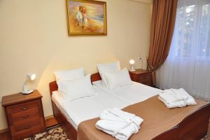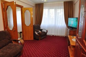 • В номере: Телевизор (Цифровое ТВ), Чайник, Чайный сервиз, Санузел (душ, ванна), Шифоньер, Встроенный шкаф, Гладильная доска, Фен, Утюг, Тумбочка, Напольное покрытие: ковролин, Смена белья...