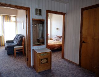 Двухкомнатный номер для комфортного размещения 4 человек. В номере расположены 4 двуспальные кровати или 2 односпальные кровати и 1 двуспальная для семьи из 3-4 человек.