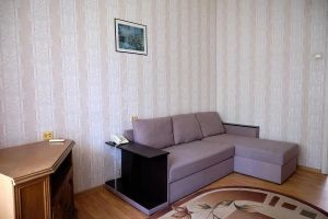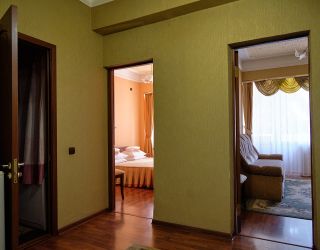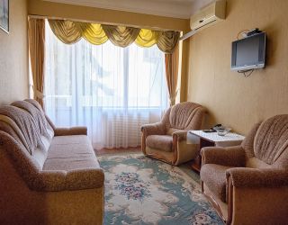 Двухкомнатный номер для комфортного размещения 2 человек. В номере расположена двуспальная кровать, доп. место - диван.