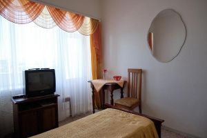 Однокомнатный номер для комфортного размещения 1-2 человек. В номере две односпальные кровати или одна двуспальная.