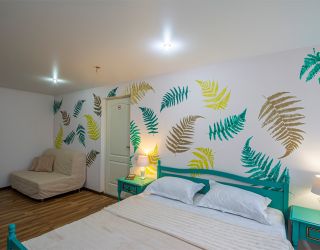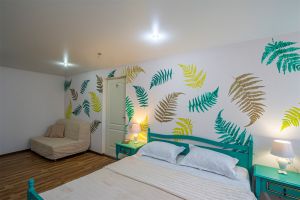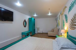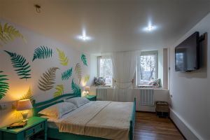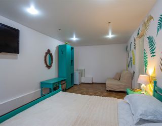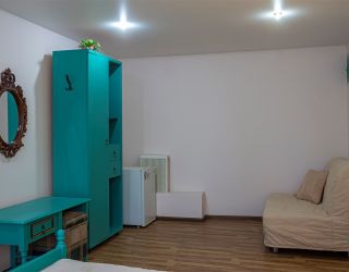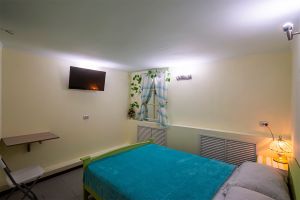 - двуспальная кровать, двуспальный диван - основное место, с/у и душ общие на 3 номера.