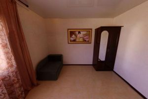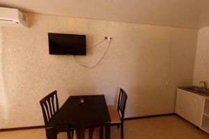 В номере: двуспальная и двухярусная кровати, прикроватные тумбочки, шкаф, зеркало, телевизор, кондиционер, обеденный стол со стульями, холодильник, ванная комната, полотенца, постельное бельё, туалетная бумага.