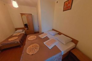 В номере: двуспальная и односпальная кровати, прикроватные тумбочки, шкаф, зеркало, телевизор, кондиционер или вентилятор, обеденный стол со стульями, холодильник, ванная комната, полотенца, постельное бельё, туалетная бумага.