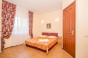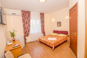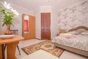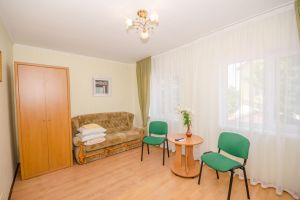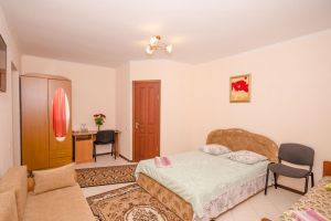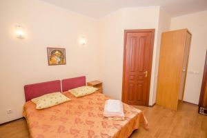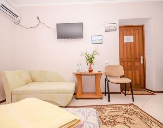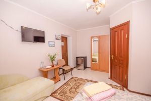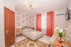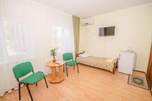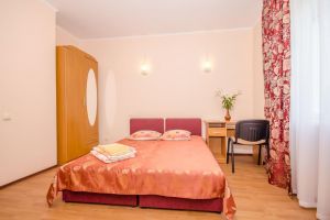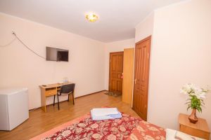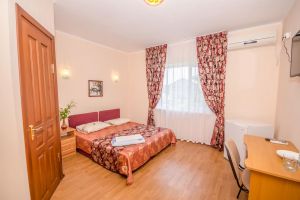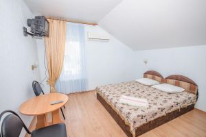 Двухместный номер со всеми удобствами: душ, туалет, телевизор, холодильник, кондиционер. В номере двуспальная кровать и раскладывающийся диванчик или кресло для ребёнка до 12 лет. Если Ваш ребёнок совсем маленький, мы с радостью предложим для него детскую кроватку, ванночку для купания и стульчик для кормления.