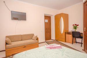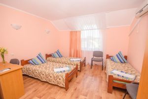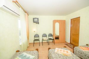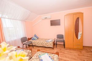 Трёхместный номер со всеми удобствами: душ, туалет, телевизор, холодильник, кондиционер. В номере с комфортом разместятся три взрослых человека.