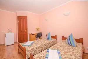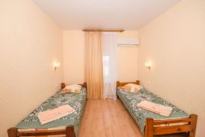 Двухместный номер со всеми удобствами: душ, туалет, телевизор, холодильник, кондиционер. В номере одна двуспальная или две односпальные кровати.