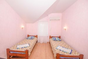 Четырехместный «семейный» номер со всеми удобствами: душ, туалет, телевизор, холодильник, кондиционер.