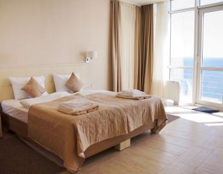 Просторный современный номер с двумя большими спальнями (вид на горы), обеденной зоной с уютным диваном (вид на море), оборудованной всем необходимым кухней, ванной комнатой с душевой кабинкой, террасой.
