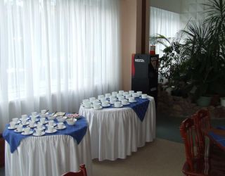 Гостиница располагает конференц-залом на 64 места для проведения семинаров, деловых встреч, конференций. Все оборудование предоставляется бесплатно. Для своих гостей Вы можете заказать кофе-брейк.