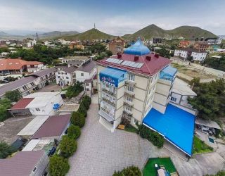 Мы находимся в центре курортного поселка городского типа Коктебель, на востоке Крыма. Наш отель славится видами на знаменитый потухший вулкан Кара-Даг и Тихую бухту.