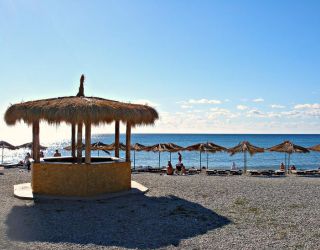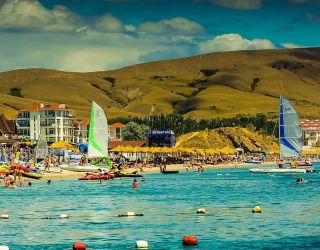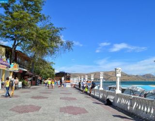 Уникальный пляж поселка Коктебель радует гостей свежим воздухом и легким бризом. Пляж оборудованный, галечный, предлагает водные развлечения в виде горок, «банана» и катамарана.